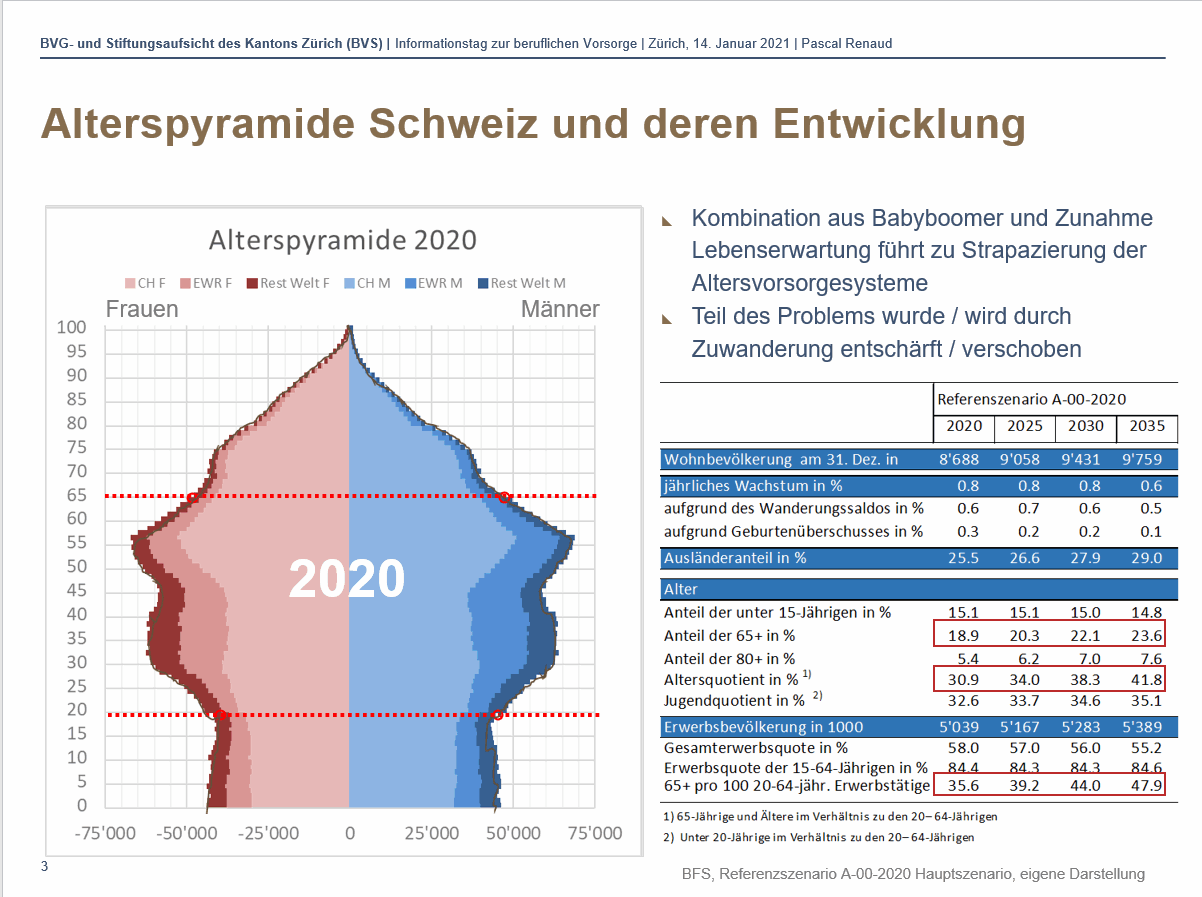 Die Generation der Babyboomer, je nach Definition die zwischen ca. 1945 und 1965 Geborenen, geht in wachsender Zahl in Pension. Die Babyboomer werden zu Rentenboomern, wie es Pascal Renaud, Partner Toptima, an der diesjährigen BVS-Tagung formulierte. Das wird in den nächsten 10 – 15 Jahren erhebliche Konsequenzen auf die berufliche Altersvorsorge haben.